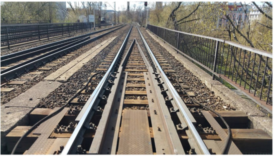 The subject of research on the continuous welded track was and is taken up by many research and development centers in Poland and abroad. The research included issues related to: stresses in the rail [10], measurement of longitudinal forces based on the rail deflection [11], temperature measurements [12,13], prevention of track buckling [14,15], stability analyses in different situations (e.g., for a specific type of railroad bed [16,17]), interaction between the track and the bridge [18], vibration problems [19] or mathematical modeling of different problems concerning the continuous welded track [20]. In Poland, work on a continuous welded track was carried out by, among others, Czyczuła et al. [21] (interaction between continuous welded track and engineering structure), Towpik [22] (stress and longitudinal force tests), Koc and Wilk [23] (longitudinal force measurements) and Bednarek [24] (continuous welded track modeling).
