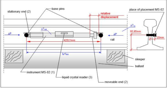 In the nineties of the twentieth century within the work of ERRI Committee (European Rail Research Institute) [25,50] comparative research of continuous welded track was carried out in two railway authorities in PKP (Polish Railways) and MAV (Hungarian Railways). That research involved the use of the MS-02 instrument to measure the displacement of the track. A considerable number of measurements were made, e.g., rail temperatures, track displacements for different test sections of the track located in different geometrical systems and under different loads. In order to compare the results obtained with the applied measurement solution, the Hungarian railway authority applied a different measurement solution and this was compared with the results obtained with the MS-02 instrument. The measurement method used in this paper has already been used and verified in many research sections, e.g., in Poland, and compared with other systems giving high convergence. However, the difficulties in carrying out the measurements forced the authors to develop a method that would make it possible to diagnose the condition of the continuous welded track in an analytical manner, limiting the number of experimental measurements to an indispensable minimum. An additional tool supporting the diagnosis of the condition of stress or temperature in the continuous welded track can be numerical models built in one of the programs using FEM. This can also be used as a component of the proposed diagnosis method used interchangeably with measurements.