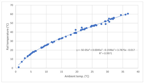 A graph of the dependence of temperature of unloaded rail on ambient temperature is shown in Figure 17.