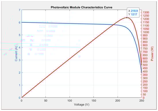 Figure 5 illustrates the P–V and I–V characteristic curves of four PV modules with a maximum power of 305.226 W connected in series without shading. When PV modules are connected in series the voltages are added up and so is the power. Therefore, the voltage and maximum power, as shown in Figure 5, are about four times that of one PV module: 218.9 V and 1217 W. Figure 6 displays the simulation results from the proposed GA-ACO MPPT compared with those from the P&O and conventional ACO MPPTs. The results show that all three MPPT methods could obtain the MPP. However, the proposed GA-ACO MPPT was the first to reach the GMPP, needing only one iteration to reach GMPP while the conventional ACO and the P&O were much slower.