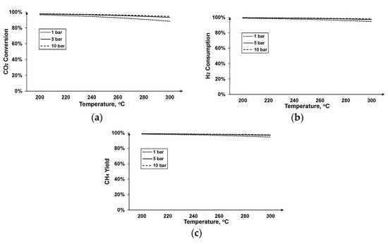 In this work, MeOH synthesis reactor is simulated using two different approaches: a thermodynamic and a kinetic approach. The thermodynamic approach is represented by an AspenPlusTM RGibbs reactor model (based on Gibbs free energy minimization), which for a given pressure and temperature, calculates the equilibrium concentration of selected components. The kinetic approach utilizes the kinetic model developed by Vanden Bussche (with WHSV = 2 kgfeed kgcat−1 h−1 and Bed Voidage: 0.33) [44]. Simulation results have shown that for the studied conditions, the deviation of the two modelling approaches is within an acceptable range (<5%) and therefore, the thermodynamic approach is being employed in the investigations.