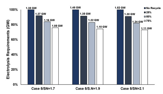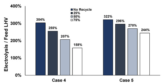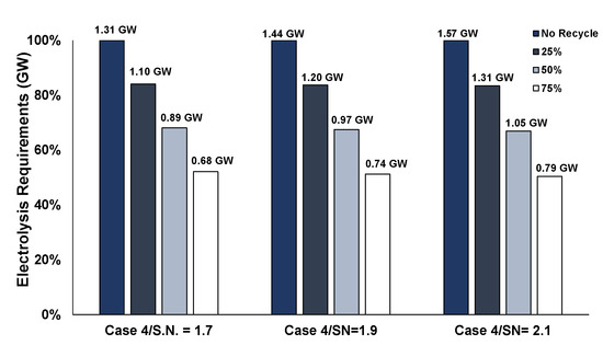 Similar with Case 2, 80% of the amounts of the gases are used for methanol production with the addition of renewable hydrogen, whereas the remaining portion is used in the power plant.