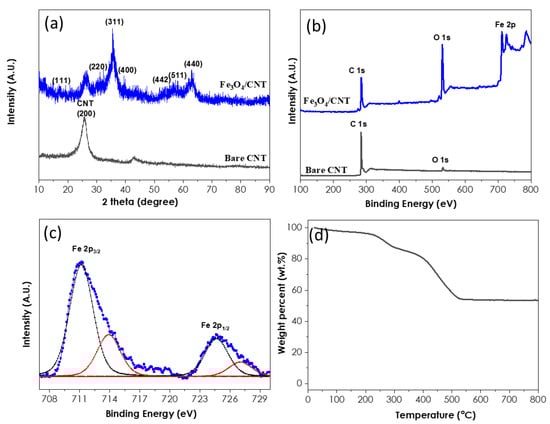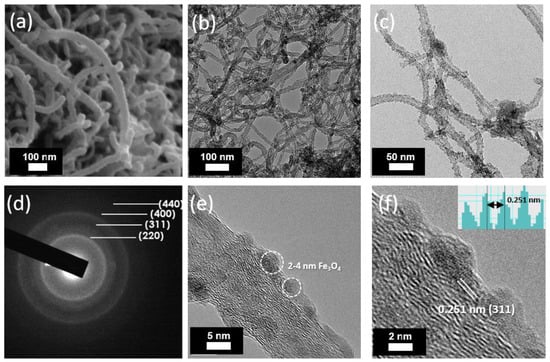 - Yu, R.; Jiang, C.F.; Chu, W.; Ran, M.F.; Sun, W.J. Decoration of CNTs’ surface by Fe3O4 nanoparticles: Influ-ence of ultrasonication time on the magnetic and structural properties. Chin. Chem. Lett. 2017, 28, 302–306. [Google Scholar] [CrossRef]