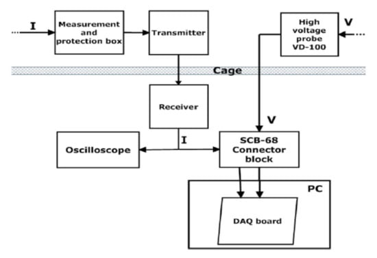 Applied voltage and leakage current waveforms and signals were acquired, monitored, and stored using a data acquisition (DAQ) system program, based on the NI-LabVIEW platform, as described in [,,]. Each test facility has its own DAQ system program, as illustrated in Figure 3 and is well-described in [,,]. As these stored samples were segments of leakage current and voltage waveforms, an appropriate post-processing software program was used to analyze and assess the data recorded during the test [,,] and was able to calculate the following electrical characteristics.