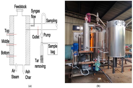 In this study, a fixed bed updraft gasifier was employed as shown in Figure 2a. This gasifier was developed by the Clean Power and Green Energy Laboratory of NCHU [24]. Various operating conditions were set up with Taiwanese rice husks as the feedstock.