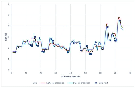 Comparison of CH4 compositions among the experimental data with the ANN and GBR models.