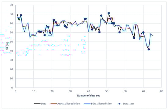 Comparison of N2 compositions among the experimental data for the ANN and GBR models.