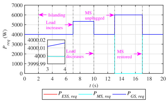 The computed value of permits the inverter-based MS to make a real power request, , within its real power range. Moreover, this action is performed with the frequency tolerance of 0.5 .