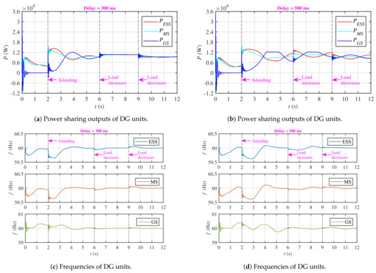 - The proposed scheme is robust to much higher communication latencies of around 1 , whereas the strategies reported in [35,36,37] considered smaller communication latencies of around 16 and have not been tested for higher latencies. Furthermore, the proposed strategy guarantees plug-and-play capability for DG units.