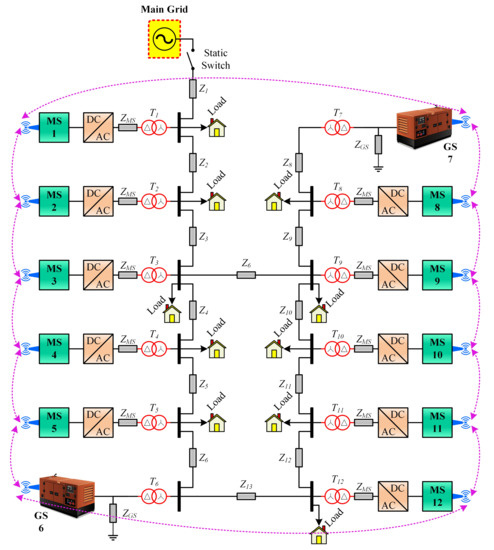 - Afshari, A.; Karrari, M.; Baghaee, H.R.; Gharehpetian, G.B.; Karrari, S. Cooperative fault-tolerant control of microgrids under switching communication topology. IEEE Trans. Smart Grid 2019, 11, 1866–1879. [Google Scholar] [CrossRef]