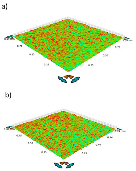 The reported Ra values indicate that a higher binder amount leads to smoother surfaces going from 0.515 ± 0.063 μm down to 0.372 ± 0.076 μm for ink_25 and ink_55 respectively. The corresponding 3D projections (area 1 mm2) are reported in Figure 6.