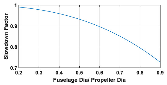 Propeller model is based on the non-dimensional coefficients defined by the vortex theory [33,34]. To calculate for the propeller- fuselage interference, a corrected factor is used that is derived based on experimental data done by Lowry in [35,36] as follows (Figure 6):