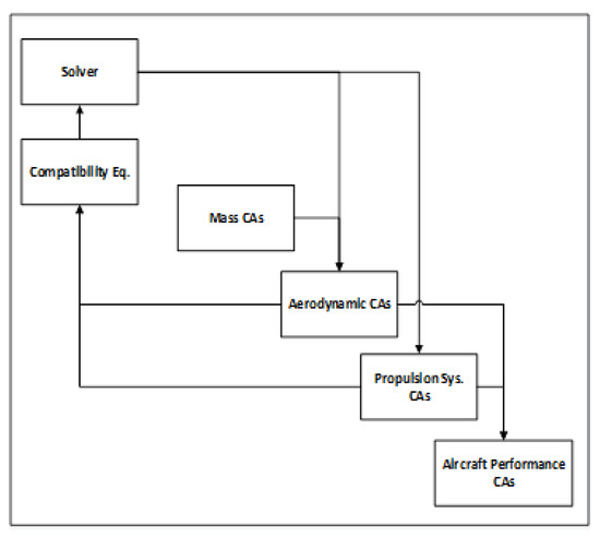 The flow of inputs and outputs between the different CAs requires a manageable system which is described as the design structure matrix. CAs are organized diagonally from upper left to lower right. Flow of data is shown as the lines connecting the CAs in which CAs are executed serially from left to right. The interaction between different CAs requires a flexible framework to execute all of CAs and guarantees that all feedback variables are in harmony with other outputs as shown in Figure 10.