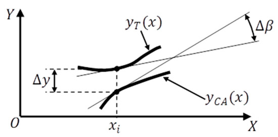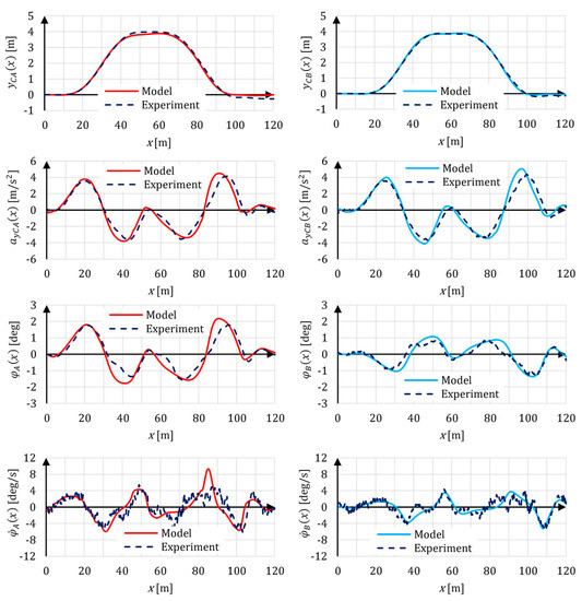 In Equation (2), the properties of the anticipating model and the value of the anticipation radius are made use of. The determination of the anticipation radius value, together with the method of planning the vehicle trajectory for the critical situation under analysis, has been presented in Section 6. Trajectory and path of the center of mass of the motor vehicle make a basis for determining the and values.