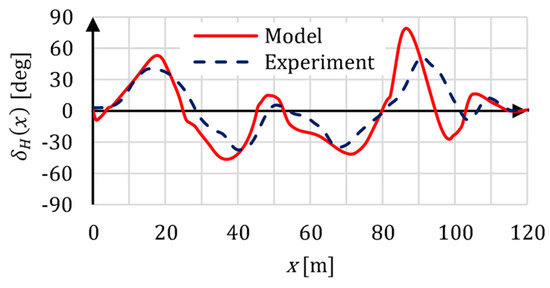 The results of an assessment carried out according to the procedure prepared as described in Section 6 became a basis for selecting temporary parameters, i.e., a method of planning the trajectory and determining the value of for the critical situation under consideration. After the temporary parameters are determined as described above, a trajectory is planned in the control system for a safe vehicle path to be obtained. The course of this path and the behavior of the vehicles moving along this path strongly depend on the dynamic characteristics of the CT unit, including the forces acting on the vehicles. In the critical situation under consideration, it is difficult to predict the values of such forces and the effects of their action (tire sideslip, skidding of wheels of individual axles, vehicles’ yaw angles from the carriageway centerline, etc.). In such a situation, it is good to have a set of the values that would facilitate the planning of a safe trajectory. The description provided in Section 2 and Figure 1 shows that the clearance margin in the critical situation under analysis should be within a range of . Such a margin makes it possible to reserve a corridor for the CT unit’s motion, wider than the CT unit width b. The said corridor is necessary because the vehicles move in positions yawed by angles and from the carriageway centreline when they are avoiding the obstacle. This yaw can be seen in Figure 14 and Figure 15.