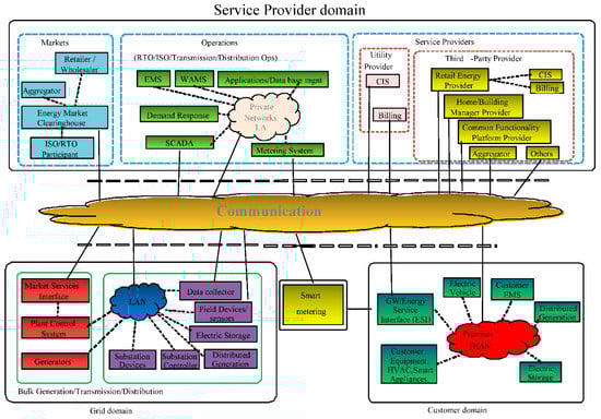 Therefore, the demand side management (DSM) of electricity consumption in recent years is considered one of the best and vital methods of maintaining common profits between the electricity industry and electrical energy consumers. DSM as a fundamental subject tries to change load consumption at peak-time to the form of long-term in dedicating resources regarding its numerous profits for both sides of the electricity industry and consumers [,]. Hereby, the power markets have paid significant attention to the programs of DSM due to their benefits in financial and load profile []. DSM not only helps the electricity industry and consumers, furthermore, it has effective benefits for generation companies. The implementation of DSM in electricity networks requires updated information and technologies. These technologies make a two-way connection between the electricity’s suppliers and consumers. Therefore, the smart controlling and the measuring tools of central energy are used for their dynamic interaction. Dynamic bidding policies include time of use (ToU), division of the critical peak time, on-time bidding, the least off-peak time, and bidding for the next days of smart bidding tools in the process of DSM implementation [,,,]. According to recent papers, three types of DSM commonly are used: environmental, network, and market. DSM with the environmental option commonly concentrates the standards on environmental and social areas such as decrease of greenhouse gasses’ emissions. DSM by using the network option aims to maintain the certainty of the network, and the aim of DSM is to trigger the financial frugality of public facilities and consumers []. The overall view of the suggested demand side management (DSM) is shown in Figure 1.