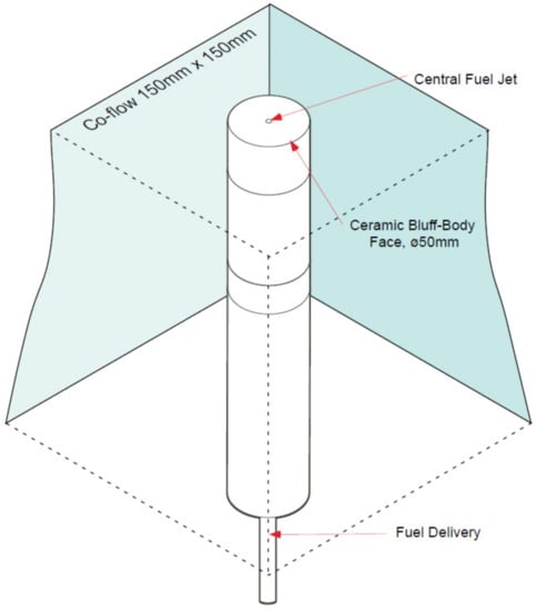 - Dally, B.B.; Fletcher, D.F.; Masri, A.R. Flow and mixing fields of turbulent bluff-body jets and flames. Combust. Theory Model. 1998, 2, 193–219. [Google Scholar] [CrossRef]