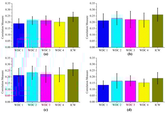 Correlation comparison results between the proposed ICW model and corresponding four WDCs: (a) April, (b) August, (c) October, and (d) December.