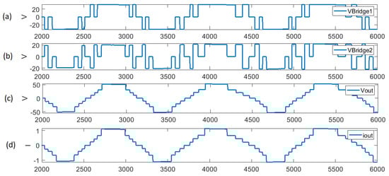 Simulation results of the proposed DC/AC topology: (a) ; (b) ; (c) ; and (d) .