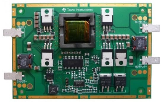 The overall schematic diagram of the converter employed in this study is presented in Figure 6. The nominal MPPT operational voltage is 40 V, also corresponding to the MPPT controller maximum operating voltage. The prototype is based on the information in Table 1, where all the component values, switching frequencies and input voltage are cited. The AF generator is immediately connected after the DC source in series with the main converter circuit, and then both DC/DC and DC/AC conversion stages are connected and controlled by using Matlab/Simulink rapid prototyping board developed by Texas Instruments (Model TMDSDOCK28035). The experiments were performed at an ambiance temperature of 20 C and the gap between electrodes when the arc occurs was set to 1 mm.