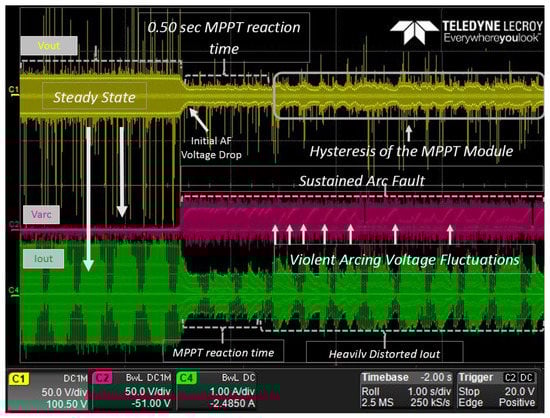 Experimental results of arcing before the MPPT module.