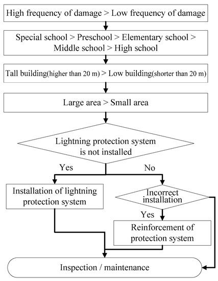 3.2. Lightning Damage Reduction Measures for Education Facilities