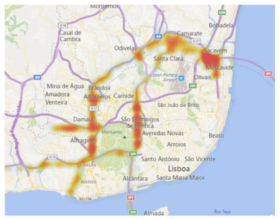 Moreover, misleads and runovers had a high incidence at the entrances and exits of Lisbon, and along the central axis of the city from Campo Grande to Avenida Infante Santo. However, these were phenomena that occurred all over the city.