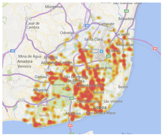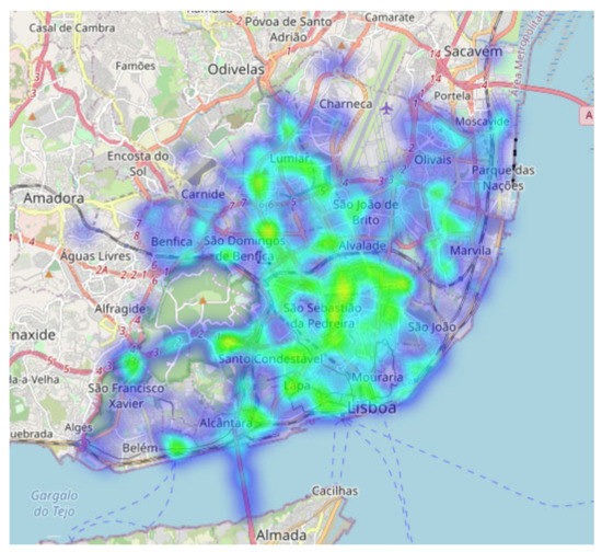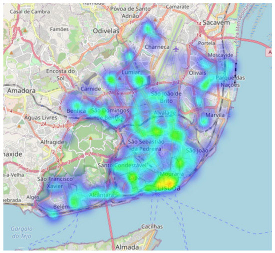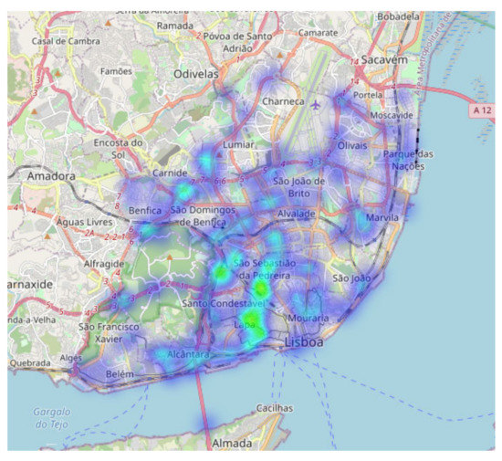 Figure 8). There was a strong incidence in the downtown area, Terreiro do Paço, that could be associated with distracted tourists strolling. Other areas include Parque das Nações, São Domingos de Benfica, and Alcântara, corresponding to entrances to and exits from Lisbon. From Campo Grande to Avenida da República, passing by Saldanha, Marquês do Pombal, Avenida Infante Santo to Avenida 24 de Julho are the streets where most runovers took place. Moreover, the same pattern was also observed in the analysis and visualization of misleads (