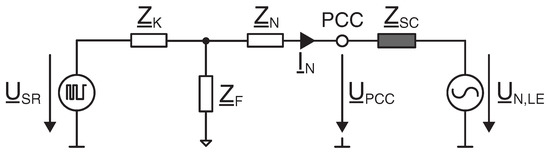 and the frequency dependent grid impedance . Because of superposition, each frequency can be calculated separately. These impedances and the voltage at the point of common coupling can be found for clarity in Figure 10.