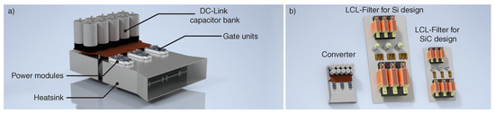 Due to the comparison of the defined functional parts, the main differences are caused by the different power semiconductors and the filter design. The corresponding LCL-Filter designs are presented in Figure 13, and, as can be observed in the figure, the SiC converter presents important filter reductions when compared to the Si-based converter design. Filter volume and weight are reduced by almost two thirds while its overall cost is reduced by 56% (see Table 7).