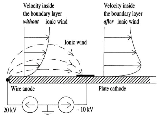 - Léger, L.; Moreau, E.; Artana, G.; Touchard, G. Influence of a DC corona discharge on the airflow along an inclined flat plate. J. Electrost. 2001, 51, 300–306. [Google Scholar] [CrossRef]