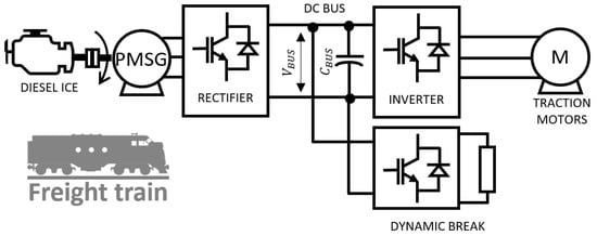 - Da Silva Moraes, C.G.; Brockveld Junior, S.L.; Heldwein, M.L.; Franca, A.S.; Vaccari, A.S.; Waltrich, G. Power Conversion Technologies for a Hybrid Energy Storage System in Diesel-Electric Locomotives. IEEE Trans. Ind. Electron. 2020, 1. [Google Scholar] [CrossRef]
