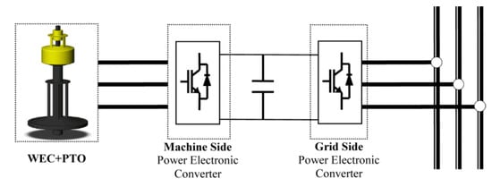 - Lafoz, M.; Blanco, M.; Ramírez, D. Grid connection for wave power farms. In Proceedings of the 14th European Conference on Power Electronics and Applications, Birmingham, UK, 30 August–1 September 2011; IEEE: Birmingham, UK, 2011; pp. 1–10. [Google Scholar]