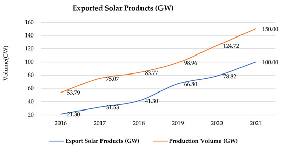 Export volume of solar PV products in 2016–2020. Source: China Photovoltaic Industry Association (CPIA) [66].