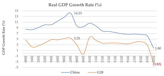 Real GDP growth rate of China compared with the G20. Source: OECD [2,67].