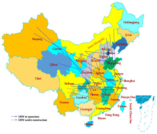 - Li, J.; Lin, B. Environmental impact of electricity relocation: A quasi-natural experiment from interregional electricity transmission. Environ. Impact Assess. Rev. 2017, 66, 151–161. [Google Scholar] [CrossRef]