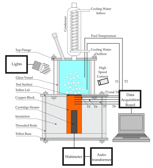 - Liang, G.; Mudawar, I. Review of pool boiling enhancement by surface modification. Int. J. Heat Mass Transf. 2019, 128, 892–933. [Google Scholar] [CrossRef]