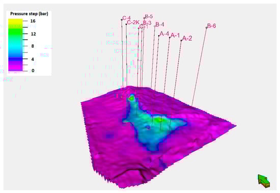 As shown in Figure 3, the geometry of the obtained spatial structural model of the main dolomite reservoir rock and surrounding rocks, including the overburden, were identified.