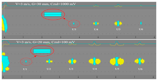 The actual sensitivities of the measuring device are inversely proportional to the parameter value called “sensitivity”. When the value of this parameter is very low (e.g., 50–100 mV), the measuring system is extremely sensitive to the slightest field changes; however, the signal produced by the device is difficult to interpret. Images of the failures fuse and also appear to measure noise (