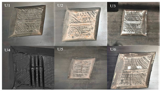 The tested failures were divided into six categories: partial cord damage (20% (U1) and 50% (U2)) in one cord, complete cut of one steel cord (U3), cut of three (U4) and six (U5) cords and resection of one cord to the length of 20 mm (U6) (