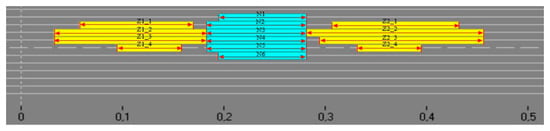 ). The process of training a neural network under supervision consists of repeatedly assessing it in the process of training samples from the test set, and then updating the weight based on the error between the network response and the expected response. To use artificial neural networks to classify the conveyor belt damage, it was necessary to generate appropriate sets of training and test sets, train the network on the training set, and then test it on the test set. Since neural networks can divide the classification of space non-linearly, over the course of this research two variants of the selection and division of the input data were distinguished. In each case, the vector of input data consisted of 15 elements (and this is the number of neurons in the input layer of the neural network): 3 measurement parameters and 4 values describing each of the three sub-areas. There are 6 neurons in the output layer—one each responsible for belonging to a given class of damage. Two hidden layers consisting of 31 and 63 neurons were placed between the input and output layers. The size of these layers was determined by the Kolmogorov theorem, according to which the number of neurons in the hidden layer should be equal to the number of neurons in the previous layer multiplied by two and increased by one [