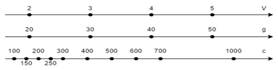 During the measurements, the belt speed (V) was increased from 2 up to 5 m/s (in increases of 1 m/s), the distance between the measuring probe and the cord (g) was changed within the range of 20–50 mm (in increases of 10 mm) and the following sensitivity levels (c) were applied: 100 mV, 150 mV, 200 mV, 250 mV, 300 mV, 400 mV, 500 mV, 600 mV, 700 mV and 1000 mV. The selection of these parameters was predicated on technical capabilities (speed of the test conveyor) and also the observation of system behaviour and its settings in numerous previous studies [
