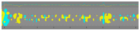 9]. The device detects magnetic field changes arising during the movement of cord failures beneath the measuring probe (installed across the width of the belt) which generate a discredited signal (−1, 0 or 1) corresponding to measured values of the magnetic field. The positive value of the signal measured by the device is represented in the figures presented in this paper in blue, and the signal of the negative magnetic field is represented in yellow.