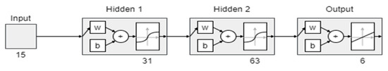 20]. This toolbox enables the creation of a multilayer neural network with a given number of neurons in each of the hidden layers, and the ability to train the neural network on a given training data set (which is automatically divided into a training and validation set). Each layer of the artificial neural network is made up of individual computing units called neurons. Neurons, stimulated by the signal fed to their input, work out the output signal using the assigned weight (