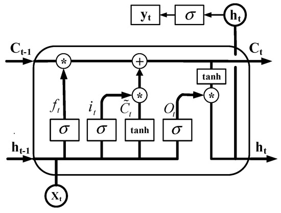 The LSTM network was proposed by Hochreiter and Schmidhuber in 1997 to avoid long-term dependencies through targeted design [34]. It is mainly composed of an input layer, hidden layer, and output layer. Its specific structure is shown in Figure 1.