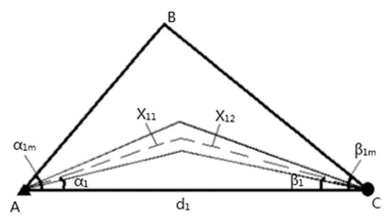 When the single well production is zero, the maximum available injection well and production well angles α0 and β0 can be obtained using the following equation: