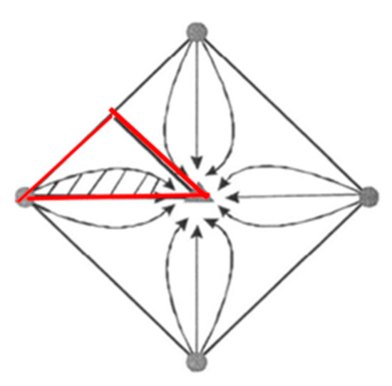 Notice that He − Hw is the key to the problem. Bo(p) and μo(p) can be obtained from a high-pressure physical property experiment. kro should be obtained based on the assumption that the production gas–oil ratio R is a constant. Thus, we can obtain krg/kro and the saturation at any pressure, and the curve can be drawn. According to the geometric meaning of the definite integral, He − Hw can be calculated. The denominator on the right side of Equation (13) is always greater than zero. When the numerator is zero, the single well production generated by the injection–production pressure difference was zero. Due to the existence of threshold pressure gradient and the solution gas resistance, not all of the area can be put to use under a certain injection–production pressure difference. The ratio of the area covered by the injection well to the area of the entire unit is the effective utilization coefficient, which is an important index for measuring the degree of reservoir utilization (Figure 10).