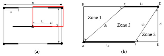 Rectangular well network after fracturing: (a) the entire well network; (b) the partition of a quarter of the well network.
