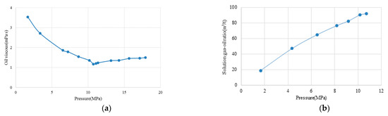 Some of the required physical property parameter conditions: (a) crude oil viscosity-pressure; (b) solution gas–oil ratio pressure.