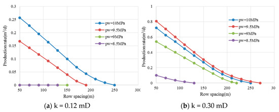 According to Equations (11) and (12), the single well production rate of the injection–production unit is: